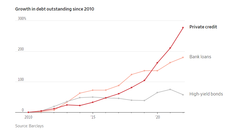 Private credit funds are taking over the corporate lending market, with assets under management rising to $1.5 trillion in 2022 from $726 billion in 2018. This shift is being driven by a number of factors, including high-interest rates, which are making it more difficult for companies to borrow from banks.